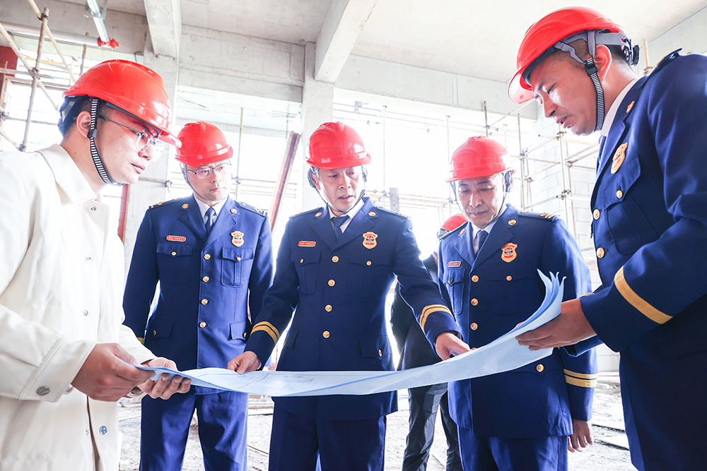 26日当天上午,盐城市区两级消防部门领导及各参建单位负责人参加了封顶仪式,在项目中心共同见证浇筑了主楼的最后一块屋面板混凝土。主体结构的顺利封顶,标志着消防站项目取得了阶段性成果。随后,各位领导对消防站建设项目现场进行了全方位检查观摩。