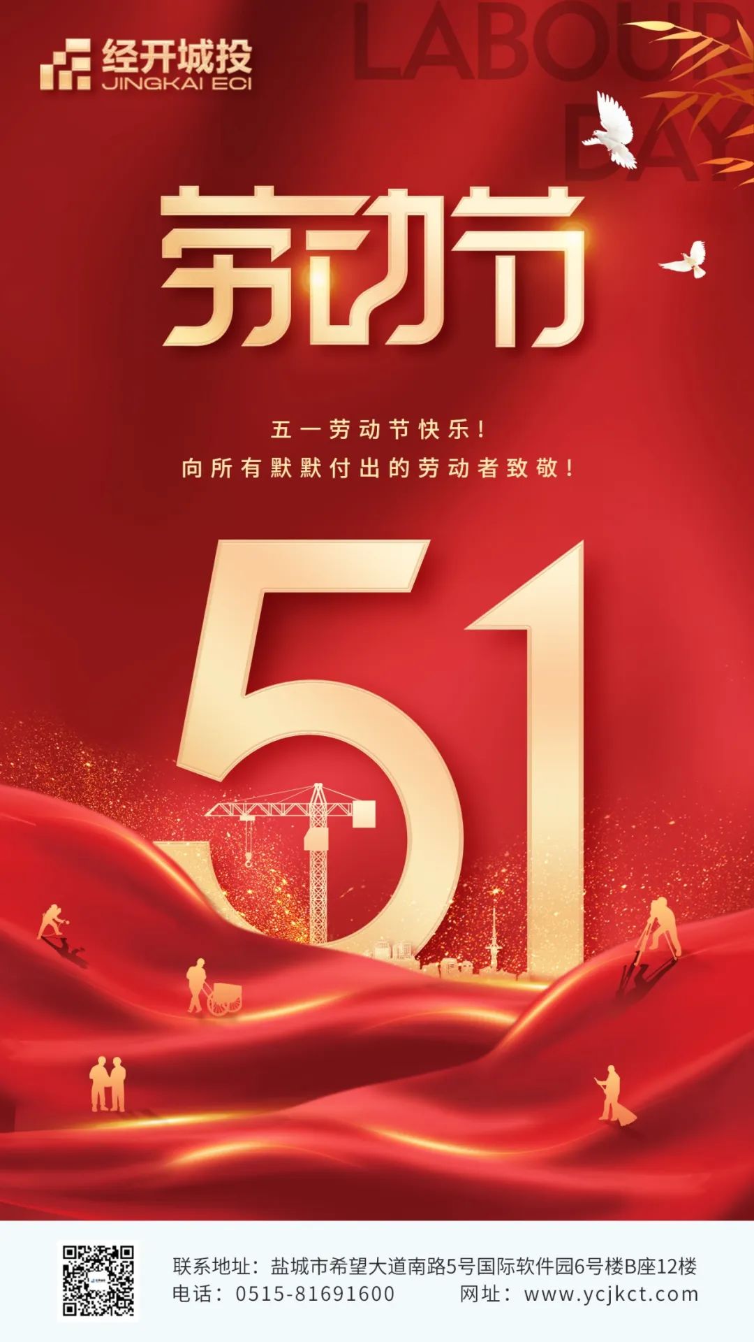 五一国际劳动节(别名:国际劳动节、国际示威游行日),是世界上80多个国家的全国性节日,也是全世界劳动人民共同拥有的节日。值此节日,谨向盐城经开城投集团全体职工致以亲切问候和崇高敬意,祝愿大家节日快乐!
