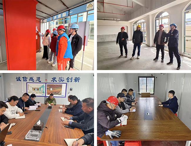 各项目部对工程现场进行了全面的安全检查,包括施工脚手架、消防设备设施、临时用电、机械设备、人员持证、晨会班前教育等多个方面。检查过程中,安全管理人员秉持严谨负责的态度,不放过每一个细节,纵向到底,横向到边。检查后,项目部组织了节假日安全防范工作部署会议,进一步提高全员安全思想认识,要求过节不放松、紧绷安全弦;也再次明确了每日值班值守人员以及安全管理工作要求,坚决杜绝节假日麻痹大意的思想。