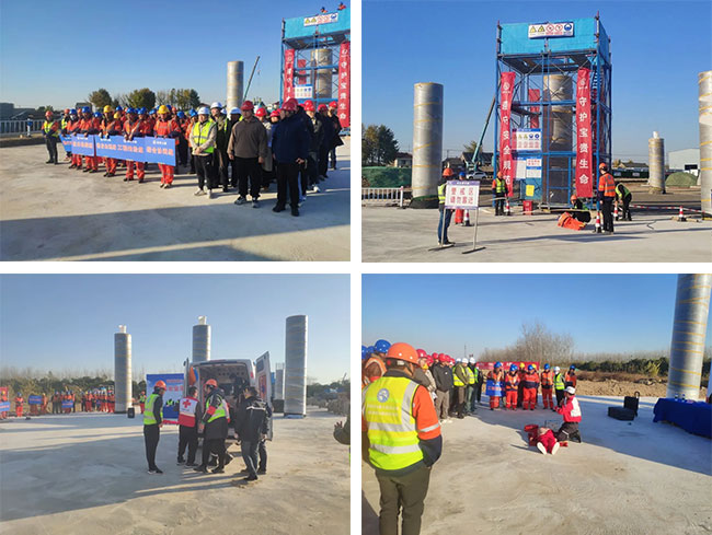 为持续树牢安全红线意识,普及安全生产知识,提升施工现场管理和一线作业人员安全素养和防护意识,有效保障施工领域安全生产形势平稳,11月28日下午,盐城经开城投集团在盐洛高速步凤互通项目现场开展高处坠落事故应急救援演练活动。集团工程条线全体人员及各在建项目项目经理、总监参加活动。