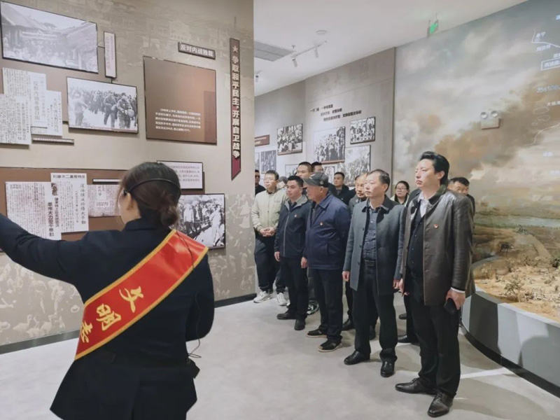 活动伊始,全体人员在讲解员的引导下走进五条岭烈士纪念馆。馆内陈列的一件件斑驳的文物、一幅幅珍贵的历史照片、一段段震撼人心的英雄故事,生动再现了盐阜大地上革命先烈浴血奋战的壮烈场景。党员们驻足凝望,聆听讲解员深情讲述五条岭烈士的英勇事迹,感悟革命先辈坚如磐石的理想信念和舍生忘死的家国情怀,为后续祭扫活动注入深刻的精神力量。