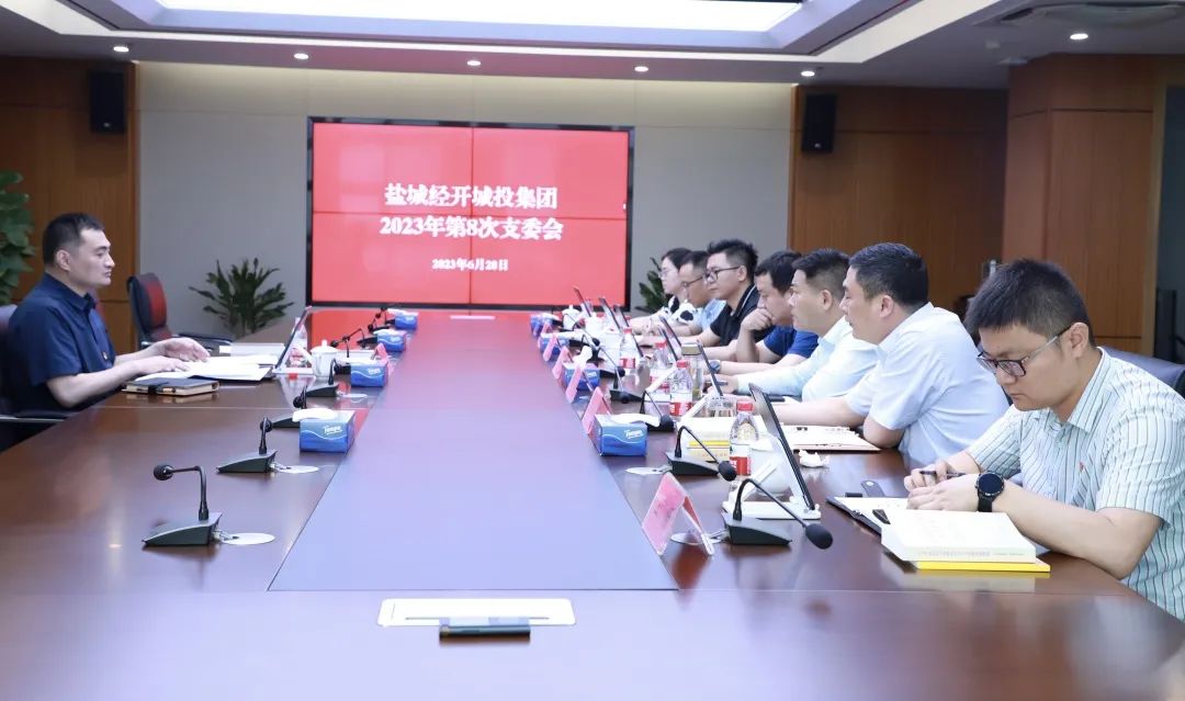 6月28日下午,盐城经开城投集团召开2023年第8次支委会,集团党支部书记、董事长王建旭主持会议并讲话。