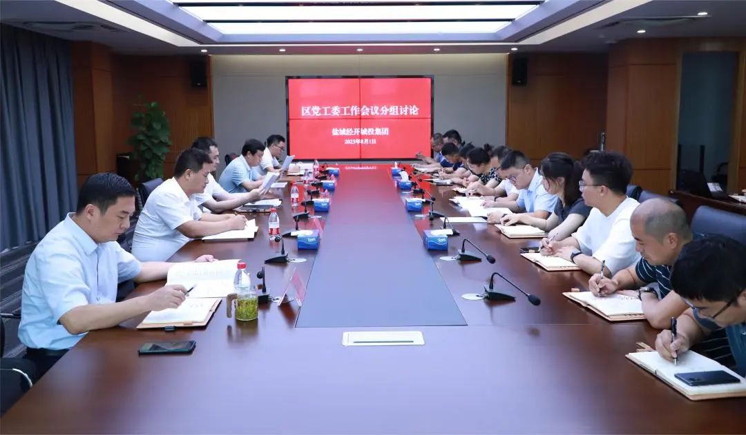 8月1日下午,盐城经开城投集团召开区党工委工作会议精神学习讨论会,迅速学习贯彻落实会议精神。集团党支部书记、董事长王建旭主持会议并讲话。