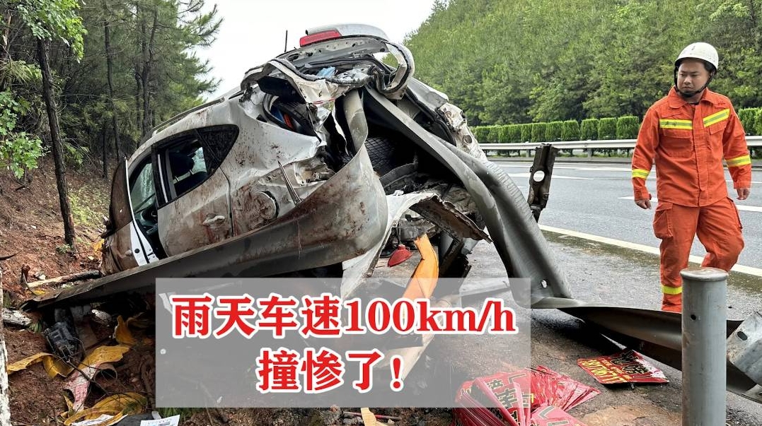 近日在泉南高速江西兴国段,李某在雨天驾车时,没将路面湿滑情况放在心上,而是以100km/h的速度行驶,结果车辆突发侧滑直撞路侧护栏。车头车尾均严重受损,车尾更是被护栏刺穿,幸运的是未造成人员伤亡。